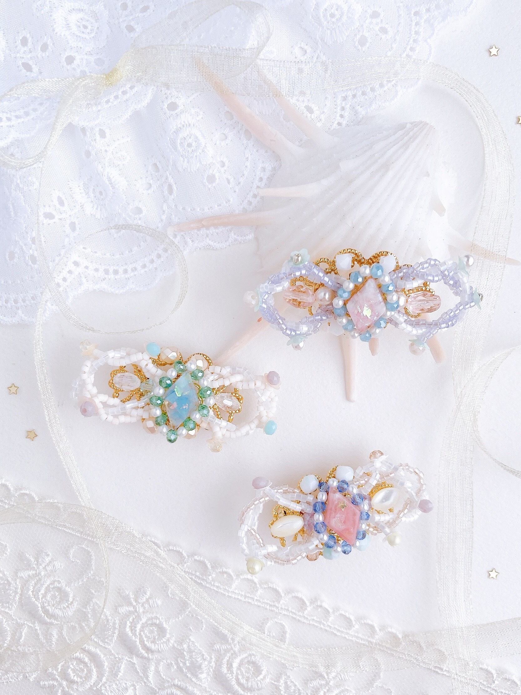散らばったお花とビーズのボリューム感がとてもかわいいです。