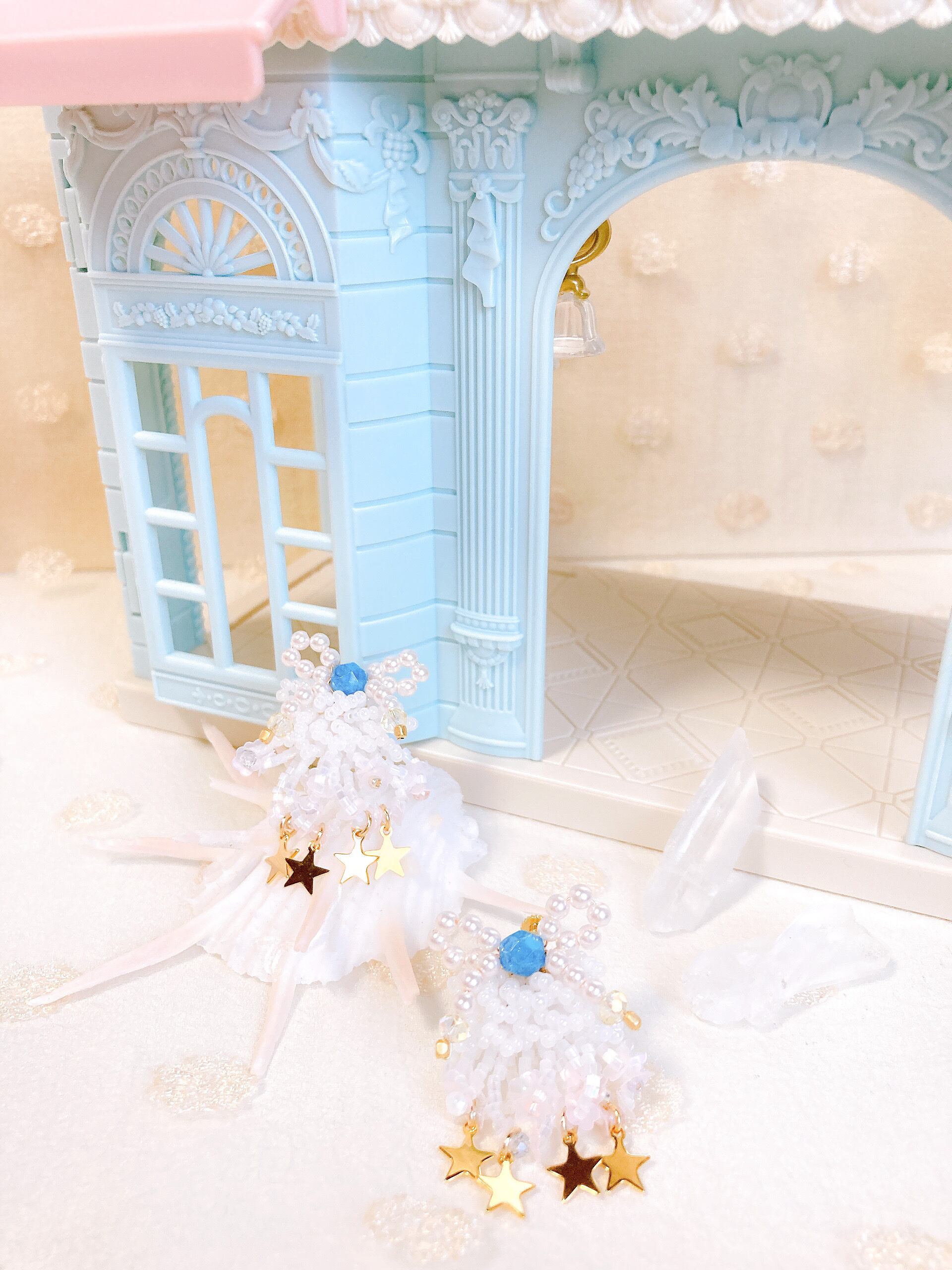 星々で飾り付けた耳飾り。
