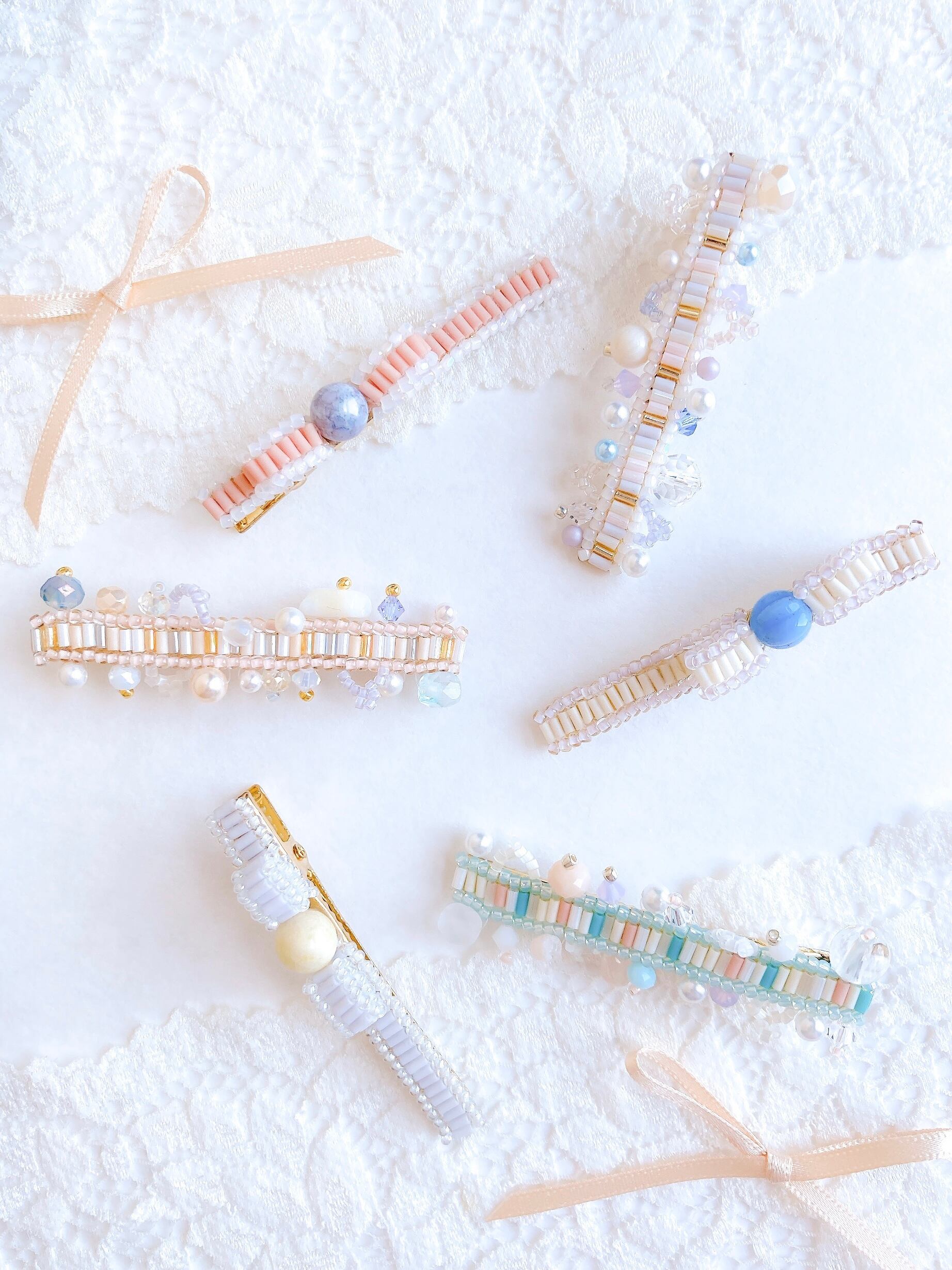 ぎゅっと詰め込んでとびきり大切なミニヘアクリップに仕上げました。