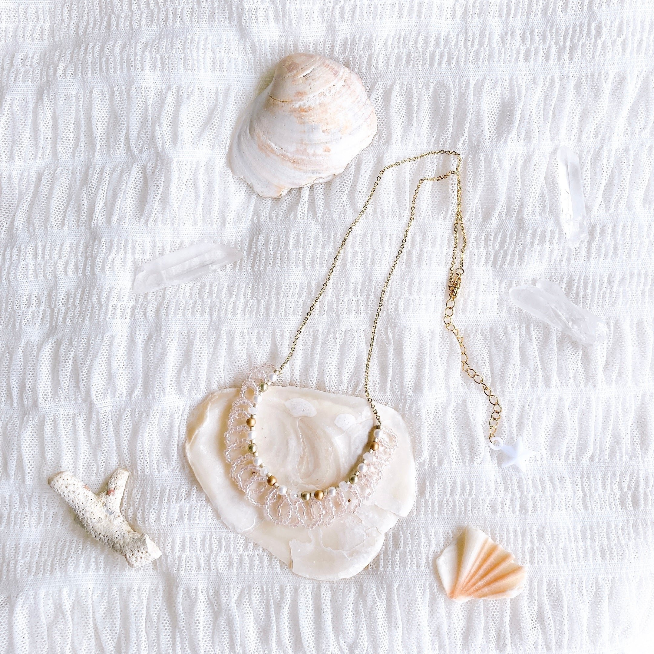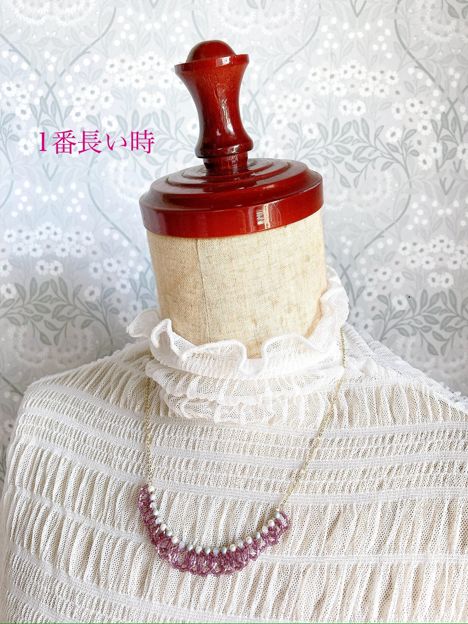 優しく小さく光るビーズが首元を優しく彩ってくれるネックレス。
