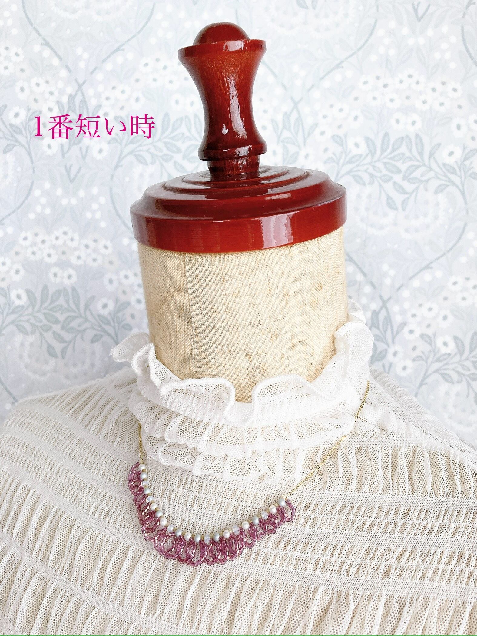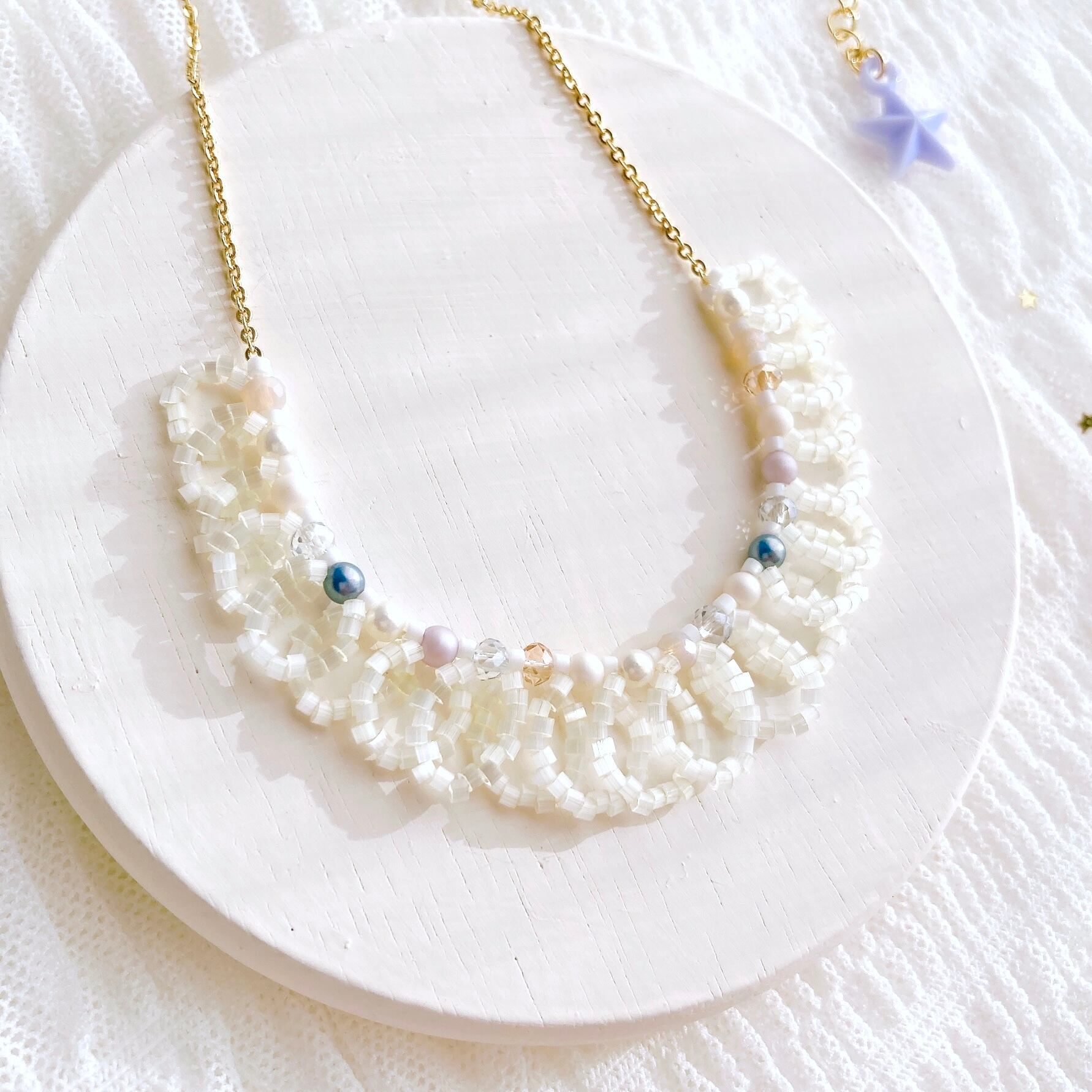 優しく小さく光るビーズが首元を優しく彩ってくれるネックレス。